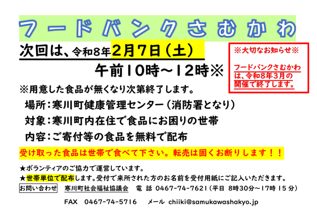フードバンクさむかわは、令和8年3月の開催で終了します。